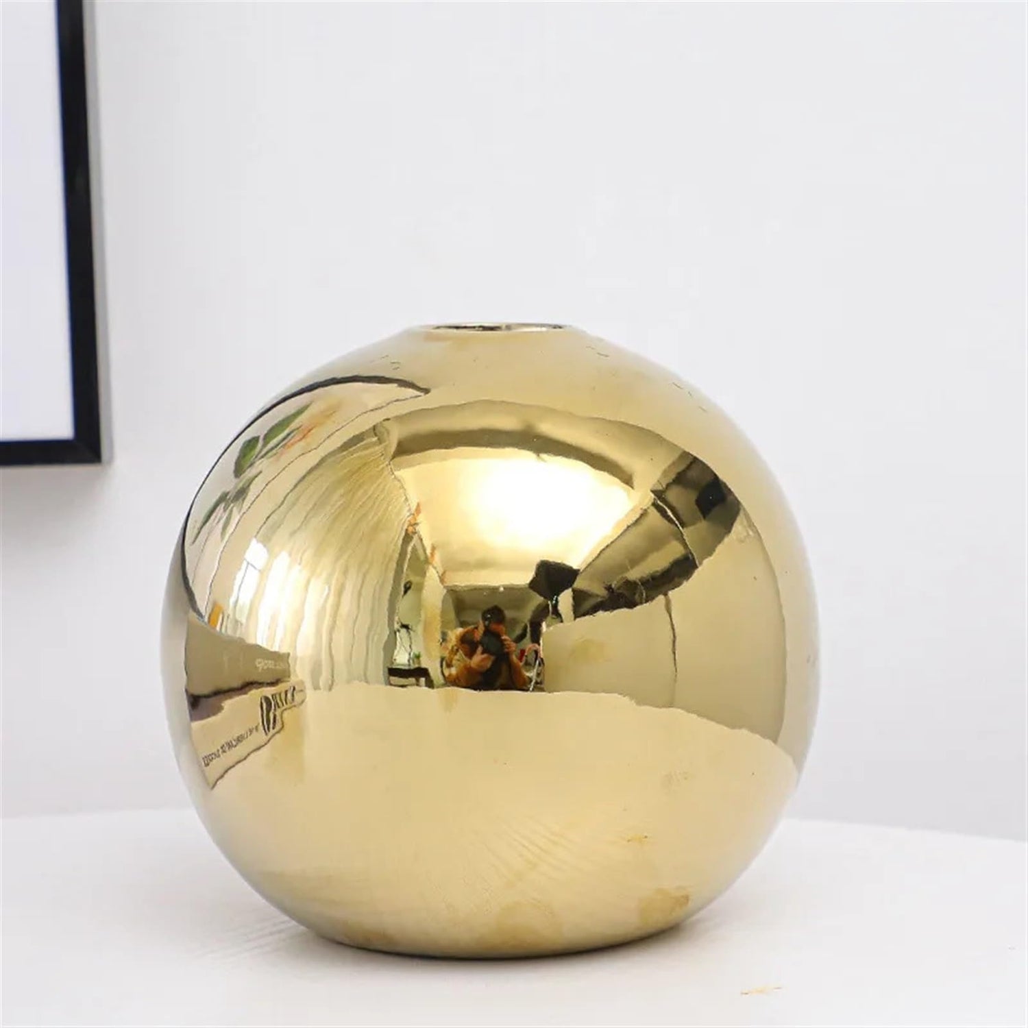 Add a touch of modern elegance and timeless charm to your home with the LunaGold Ceramic Sphere Vase. Its glossy, golden finish catches light beautifully, making it a standout piece whether styled alone or filled with florals. This artistic ornament blends seamlessly into both minimal and luxe interiors, serving as a flower pot, hydroponic vase, or decorative accent. Ideal as a thoughtful gift or a stylish addition to your entryway, coffee table, or office space.